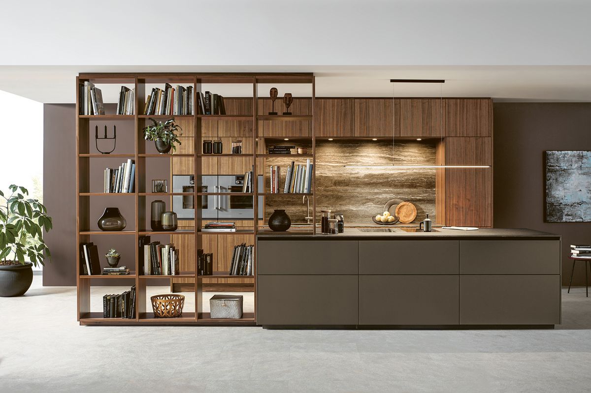 Die Lösung dieser Frage setzt next125 mit einer nahtlosen Verbindung von Küchen- und Wohnmöbeln perfekt um. Elemente wie der Pocket-Door-Schrank, das Paneel-System, der Trolley, Wohnregale, Sideboards, Highboards und der Kochtisch schaffen flexible Übergänge. So wird die Küche Teil des Wohnraums, ohne die klare architektonische Struktur zu verlieren, und bietet gleichzeitig Funktionalität und stilistische Kontinuität.
